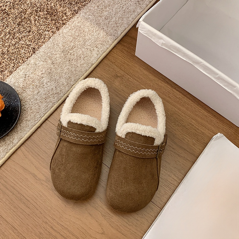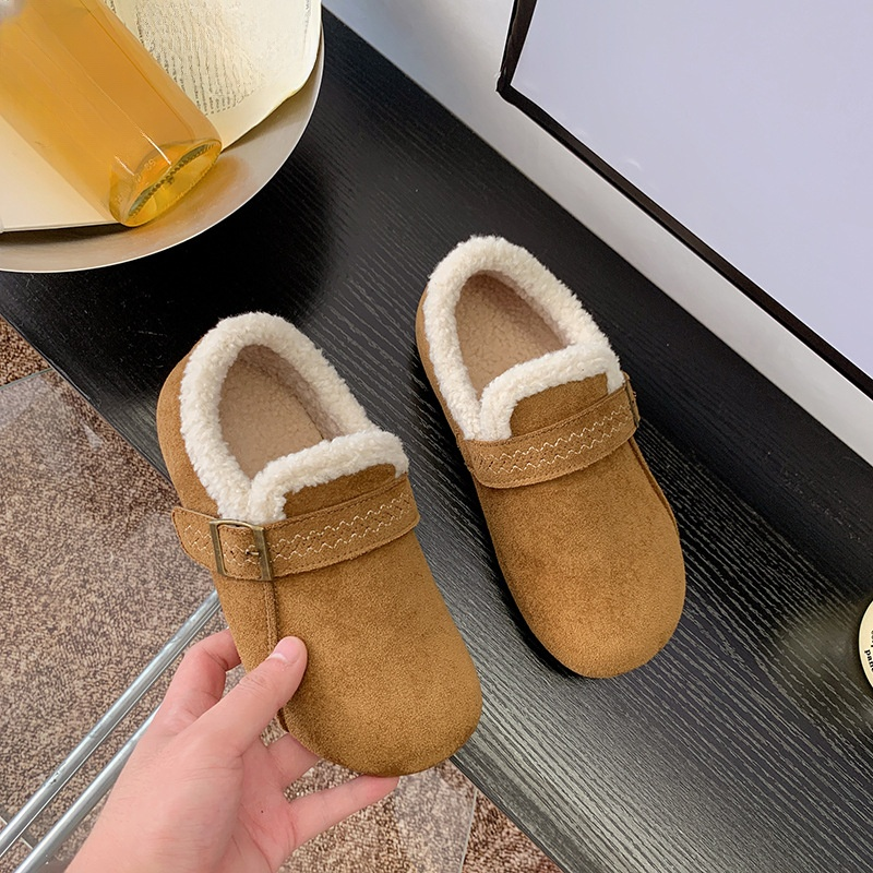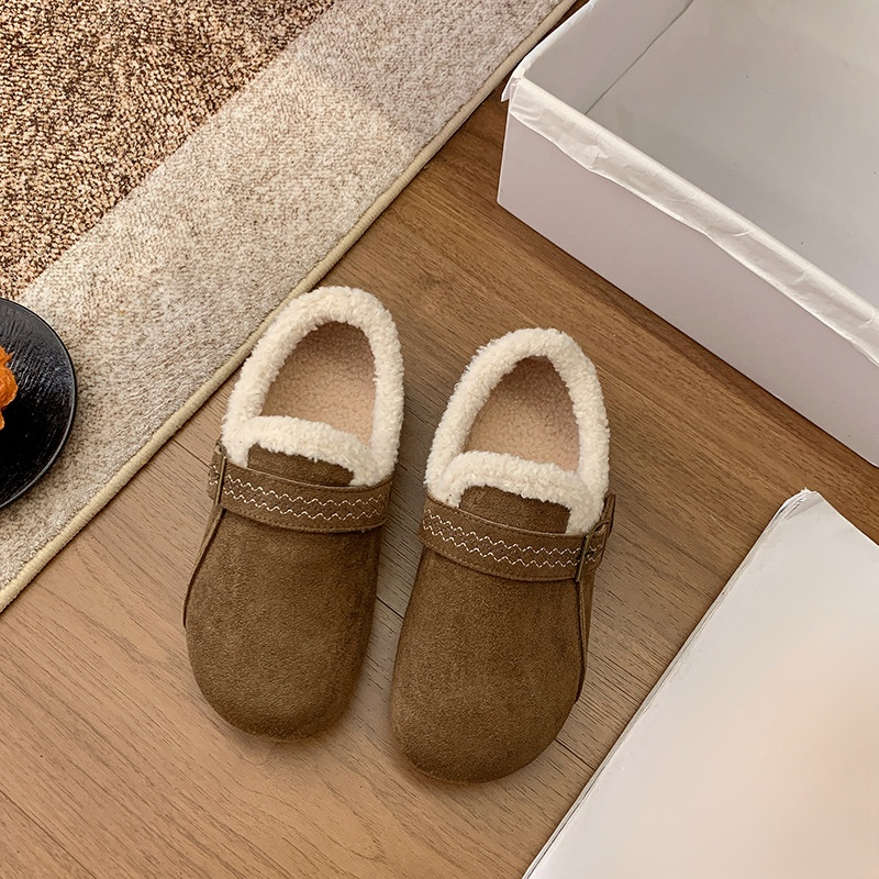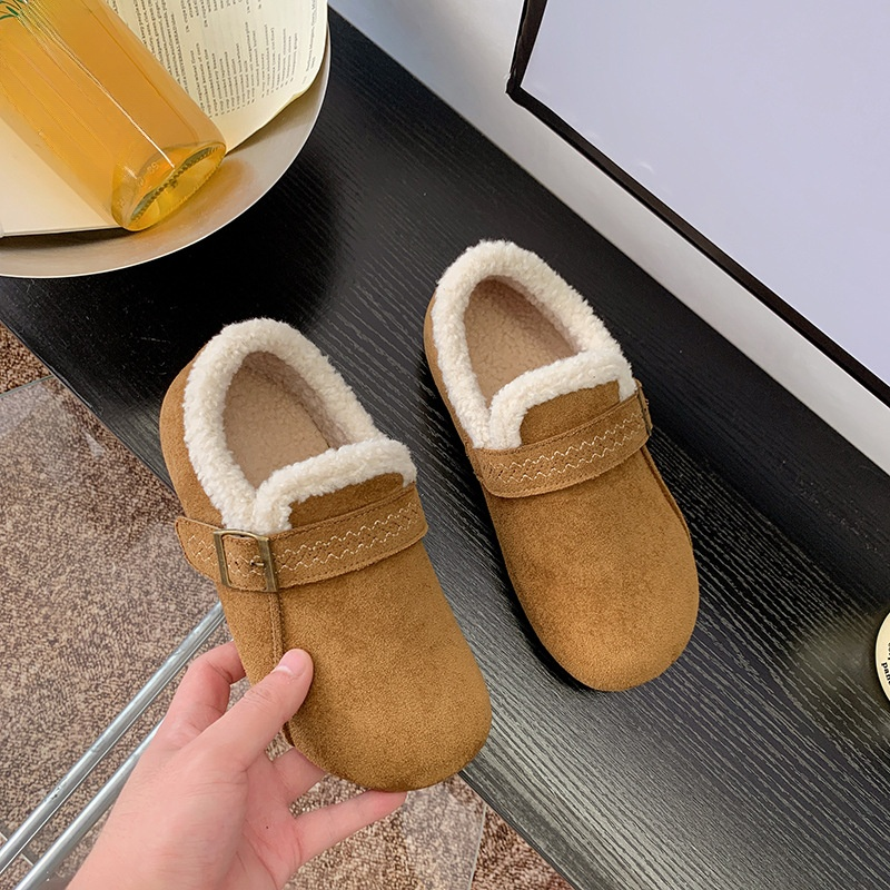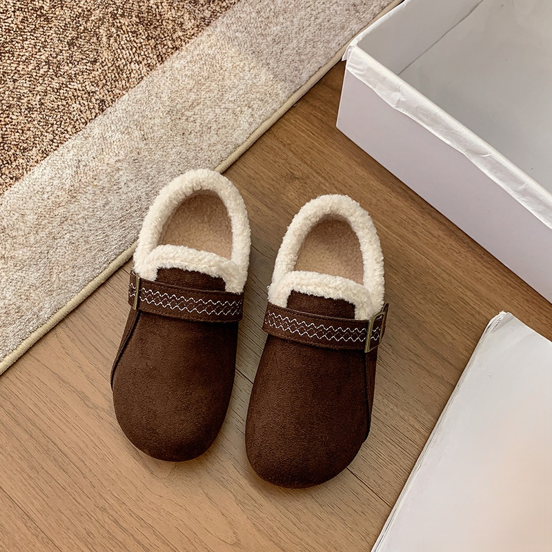 秋冬復古加絨保暖樂福鞋 厚底棉休閒樂福鞋