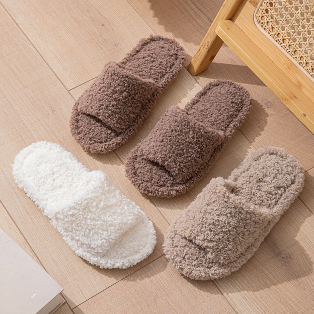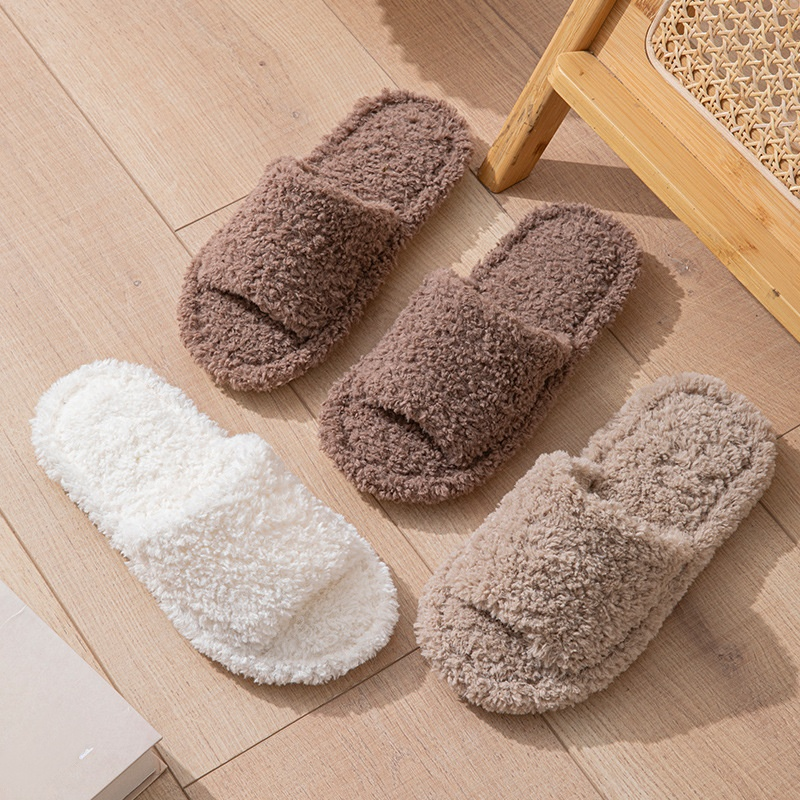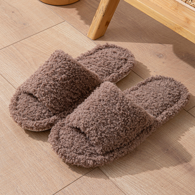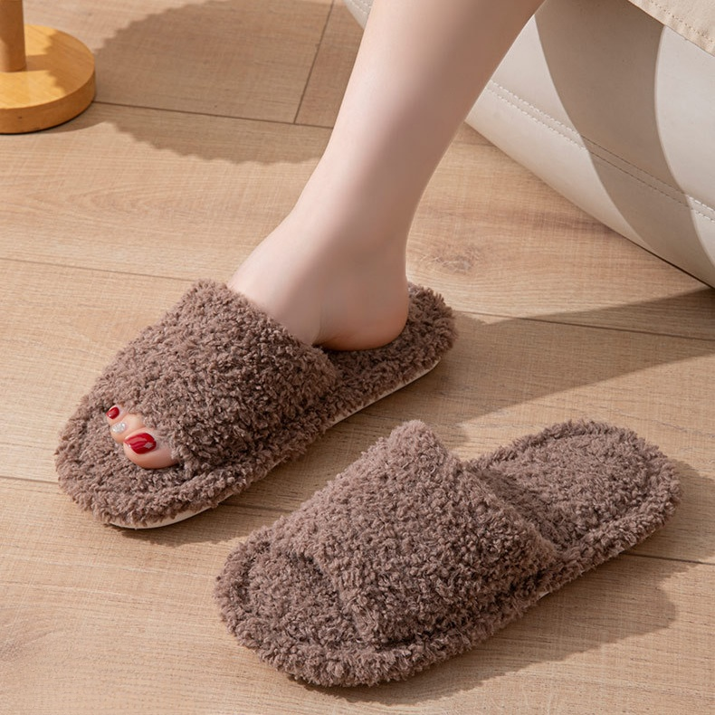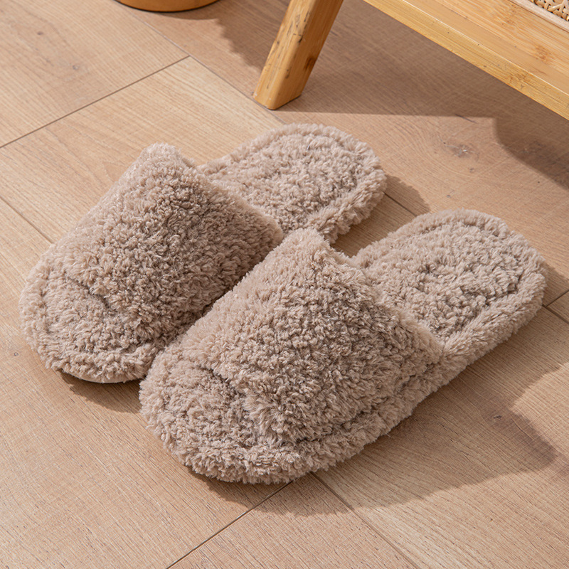 舒適毛絨開口拖鞋,情侶家居歐美風棉拖鞋