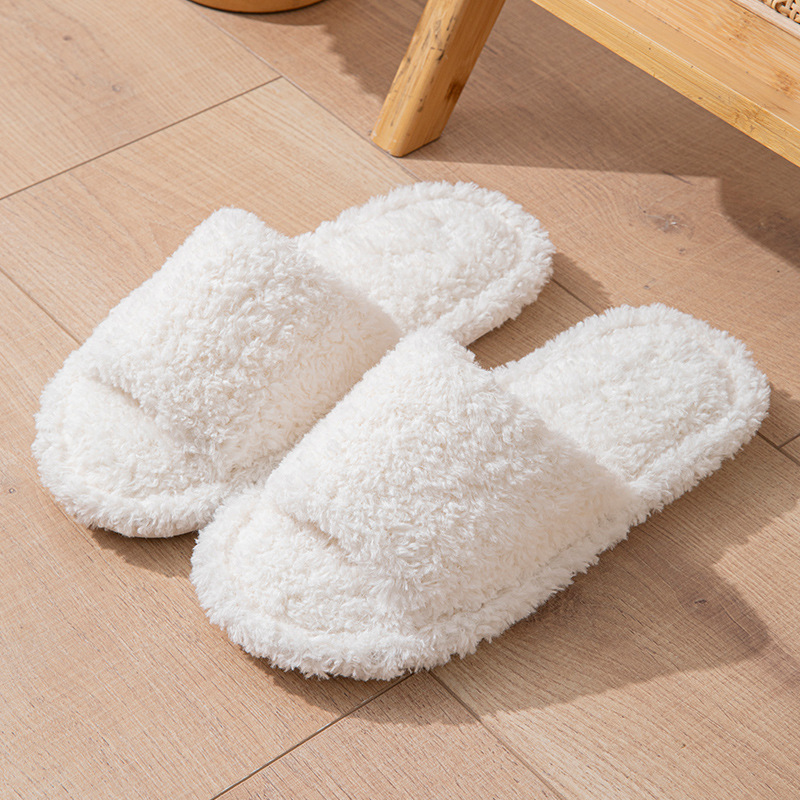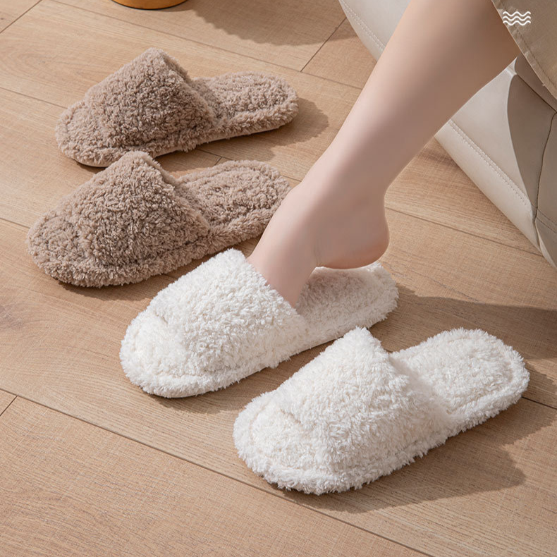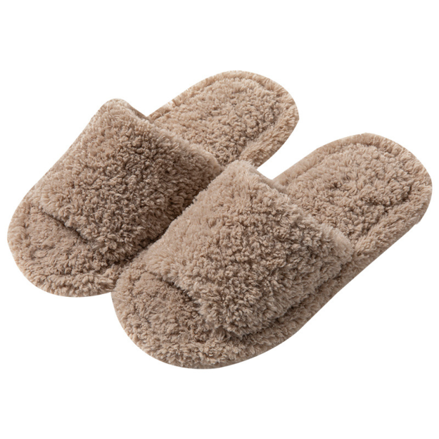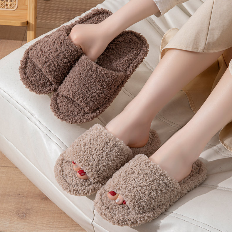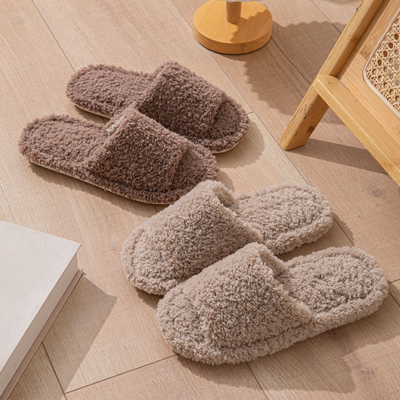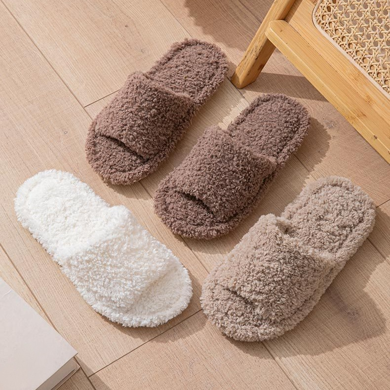 舒適毛絨開口拖鞋,情侶家居歐美風棉拖鞋